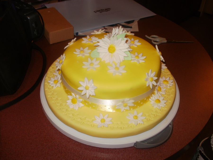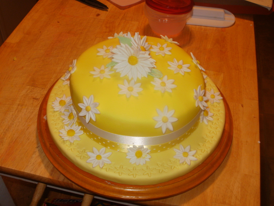 lemon cake with yellow fondant and daisy's all over