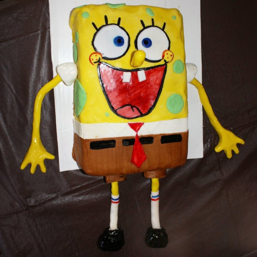 Spongebob cake for a little boy's 2nd birthday party. Vanilla cake frosted wtih buttercream, covered in marshmallow fondant.
