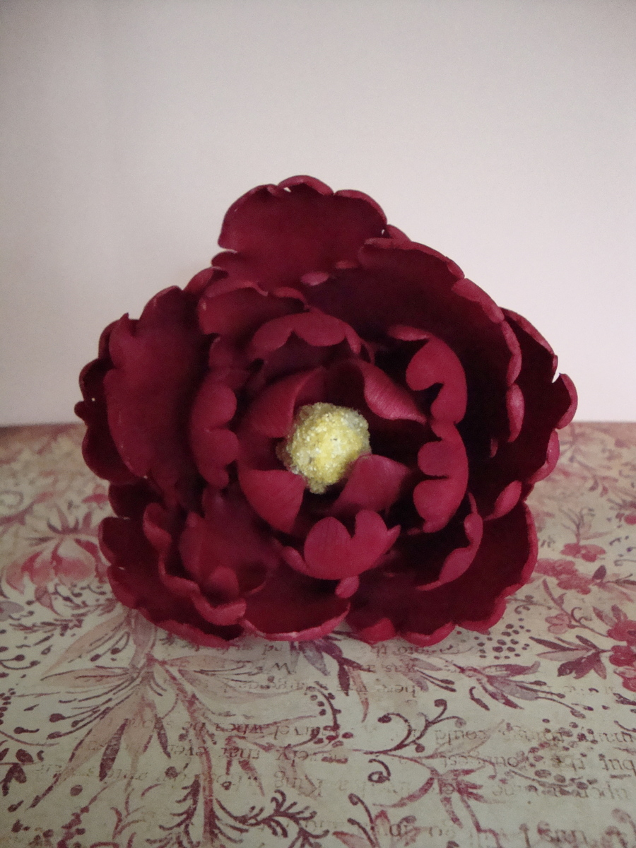 This is my first attempt at a "real" flower. I used GSA peony cutters and burgundy/juneberry petal dust. I'm using this on my next cake which is my Mom's birthday cake!! Any suggestion to improve is greatly appreciated!