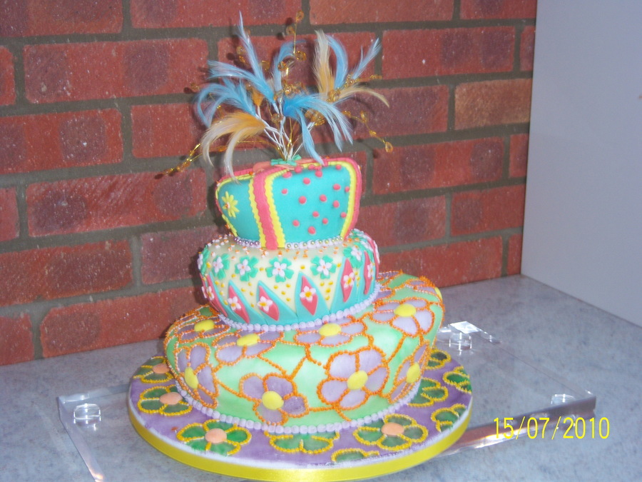 My frist Topsy Turvey Cake, made for my brother who wanted something completely different for his wedding. Vanilla sponge with fondand. I really enjoyed making this cake.