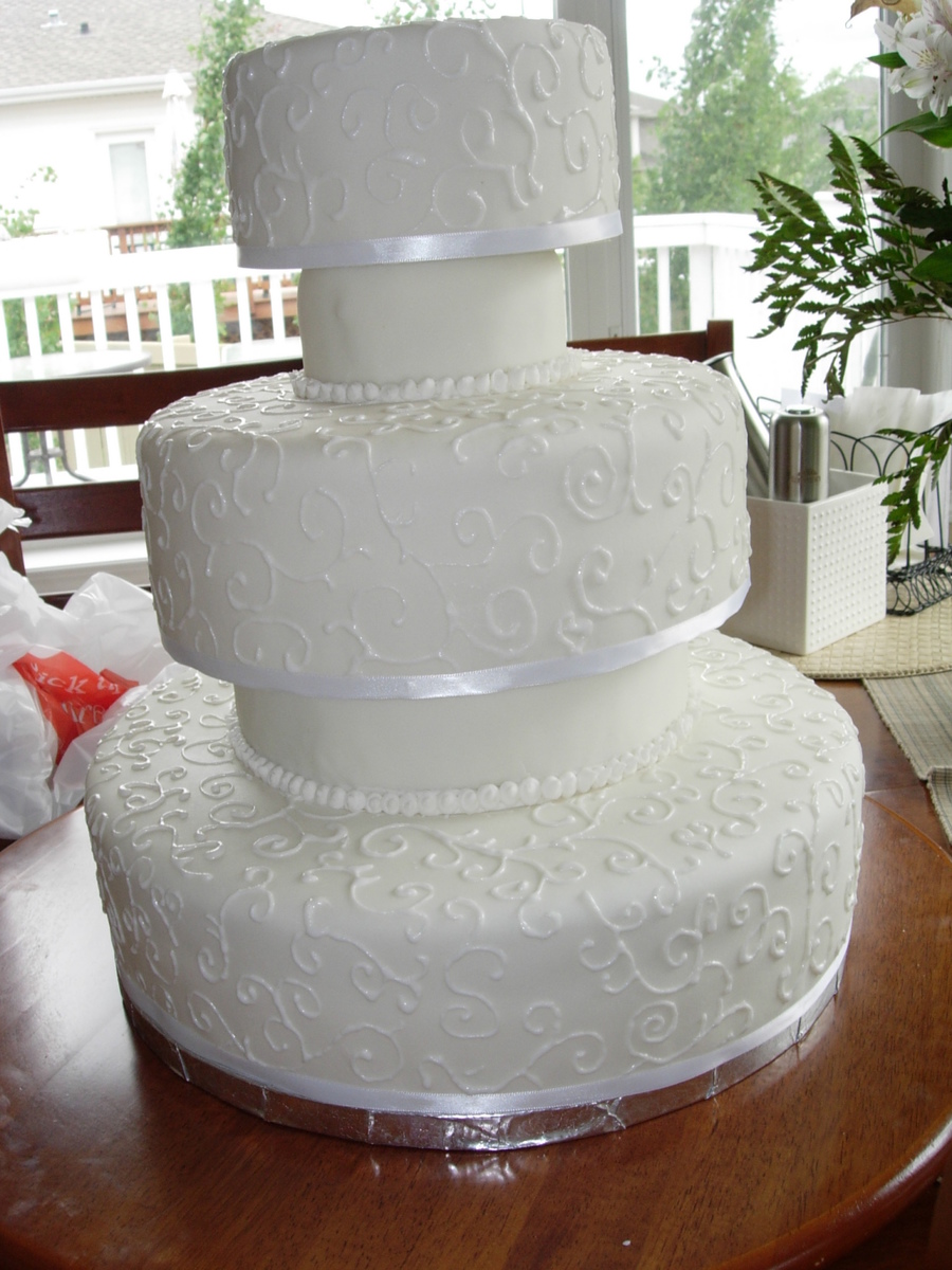 The florist was to add the flowers at the hall. The customer picked it up so I never got a picture of it all finished in white roses. That is so frustrating
