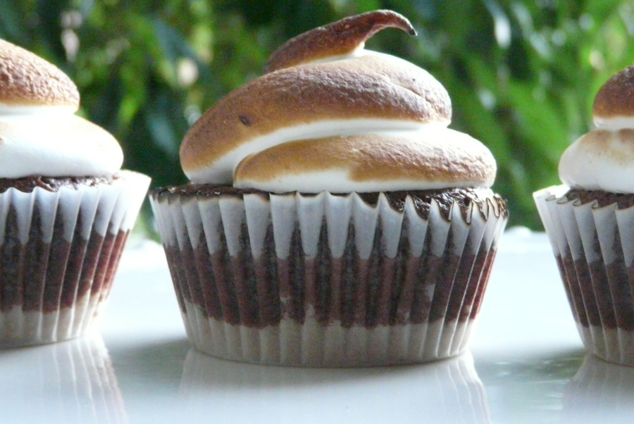 A graham cracker bottom with a fudgy chocolate cake layer topped with toasted marshmallow icing! Yum!