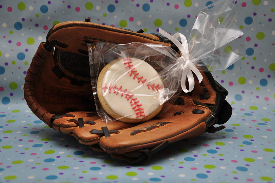 I made these for my son's tee ball team. They were sugar cookies with MMF on them with royal icing stitching.