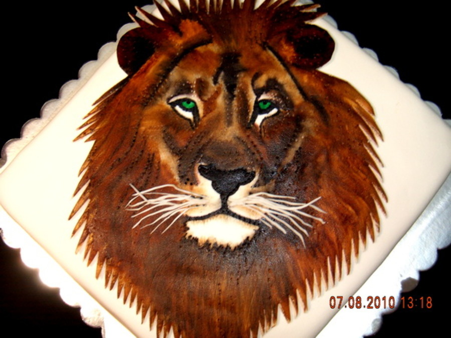 The lion is hand painted on fondant,and it is edible.Painted the color powder, diluted with a little alcohol. Thanks for looking!
