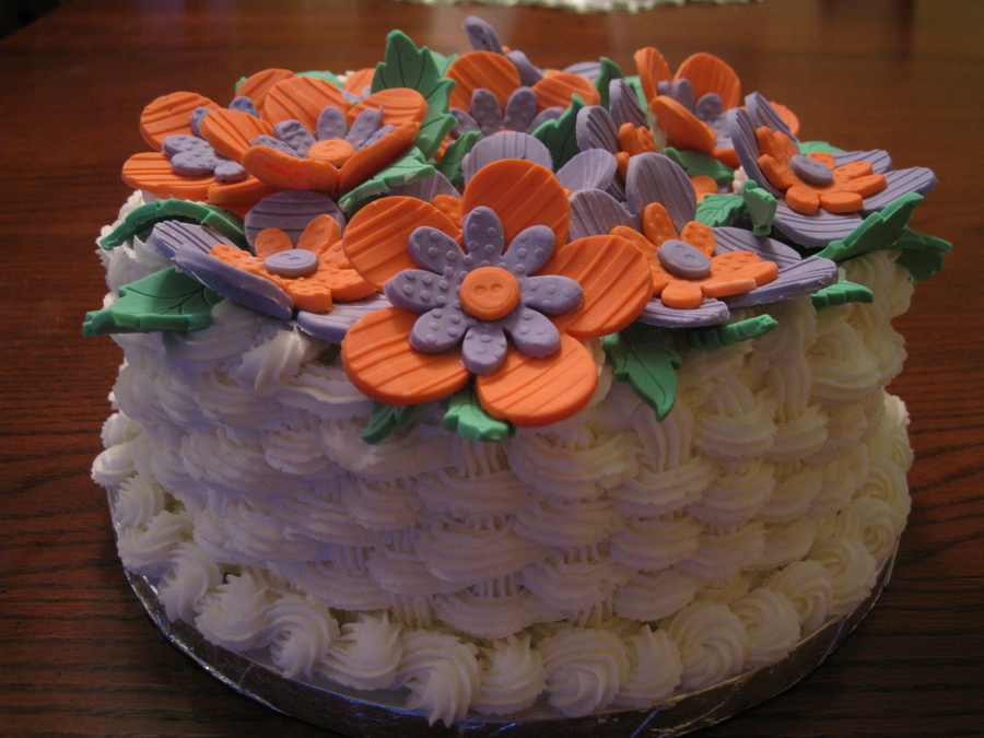 Trying out the button flowers - I had only done them in class. This was my sister's birthday cake - dark chocolate with chocolate buttercream filling. I wish I could get my basketweave to look more precise. Practice makes perfect, I guess!