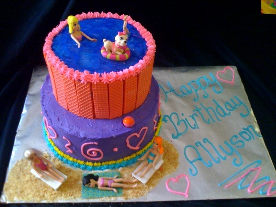 All covered in buttercream and the pool on top is outlined with strawberry sugar wafers,