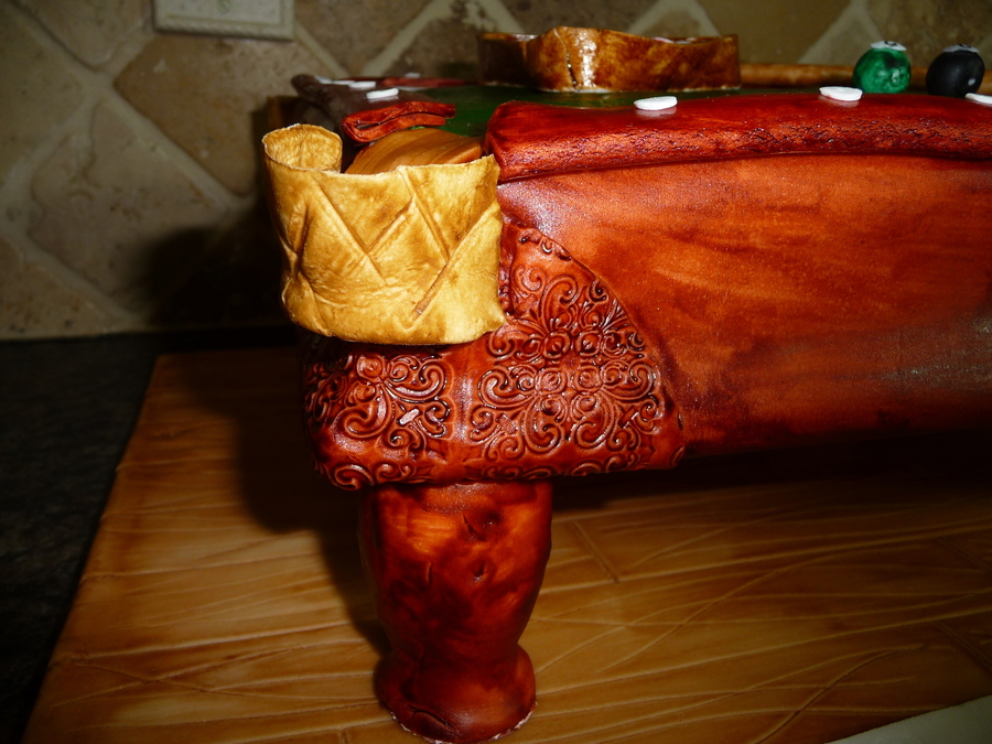 Chocolate Fudge Cake with Chocolate Mocha Ganache filling and Vanilla BC. Fondant and gum paste accents.