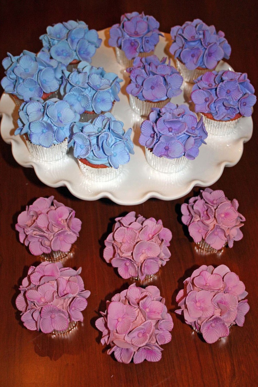 These hydrangea cupcakes were made from Peggy Porschen's latest book. The flowers took days to complete, but I was really pleased with how they came out. The cupcakes were strawberry with vanilla buttercream tinted to match the flowers. They were made for a teacher appreciation luncheon at my son's preschool.