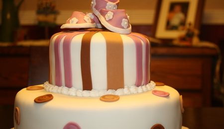 Fondant cake with real flowers.