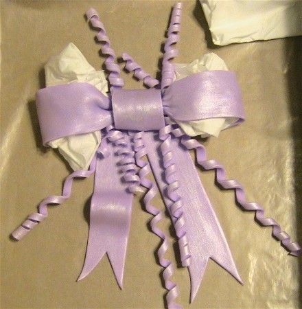 My first "official" cake order. Cake is spice cake with cream cheese flavored buttercream frosting, covered with MMF. The ribbon around the cake is also MMF. The bow and the curly cues are wilton fondant painted with super pearl dust. Round tip 12 for the border. My friend got this for her boyfriend's daughter's birthday. She absolutely LOVES it!!