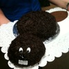 This was a cake that I made for a co-worker's birthday. The inside was cherry cake iced with chocolate buttercream. Eyes and nose were made of fondant.