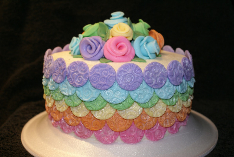 I wanted to use my new texture mat. Choc cake, Buttercream with fondant dots and roses. Thanks for looking :)