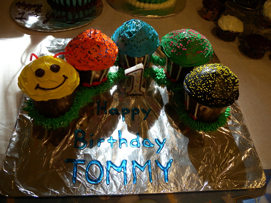 These cupcakes were made using an extra large cupcake pan. Legs and feet were piped on with buttercream. Antennas are licorice ropes.