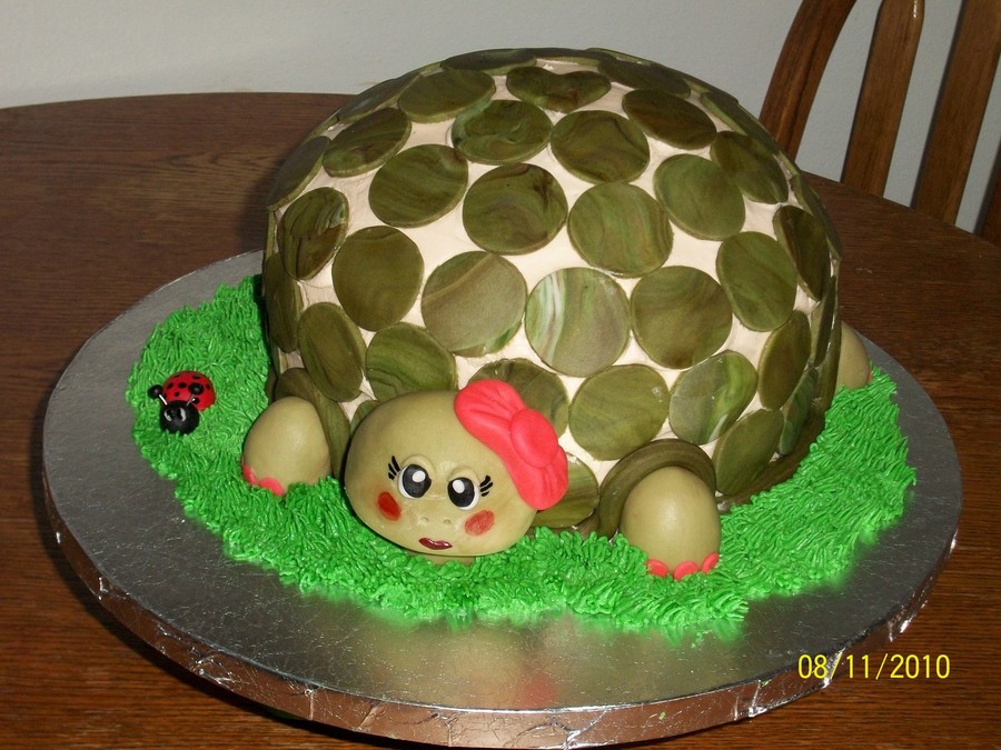 buttercream w fondant accents, tutrle cake(chocolate cake w carmel and pecan filling
