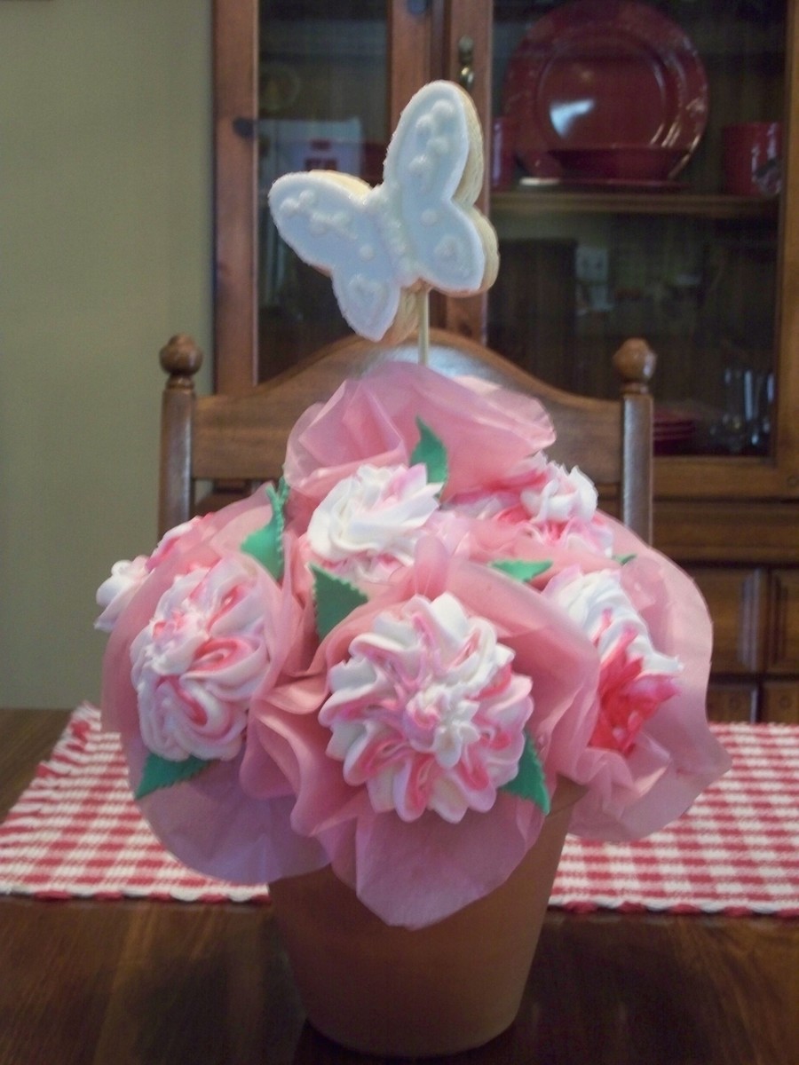 CUPCAKES WITH BUTTER CREAM ICING, WITH A COOKIE ON TOP