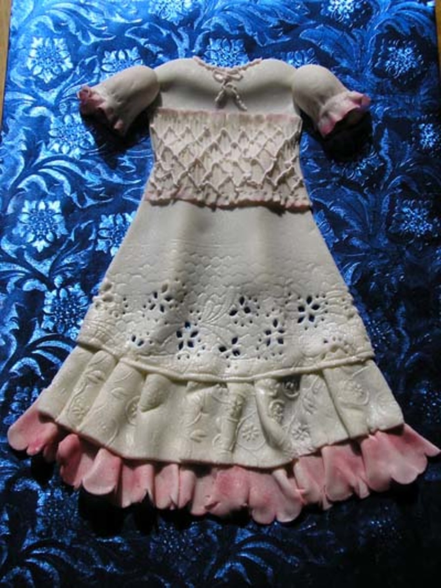 This fondant baby dress is actually very easy to make and looks great over a cake. The possibilities are endless and they're great fun to do. Thanks for looking!