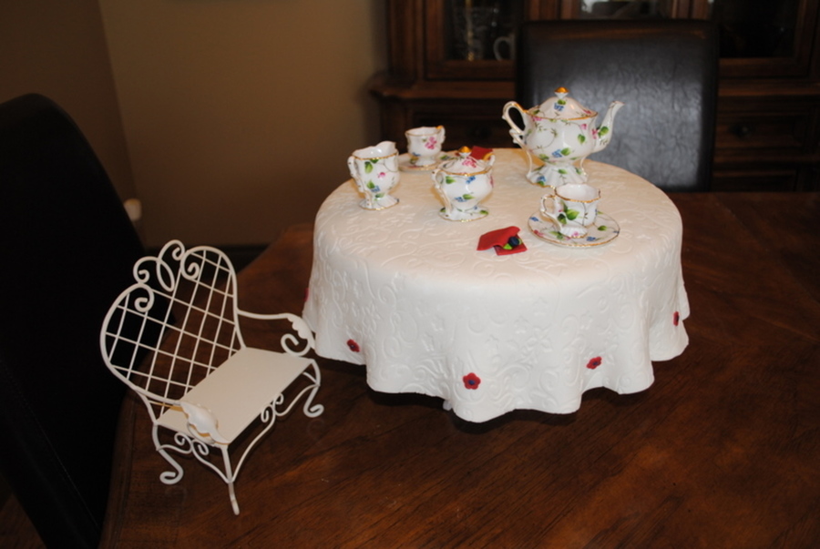 tea set is not edible, but the table is! white cake, custard filling covered in mmf. thanks for looking