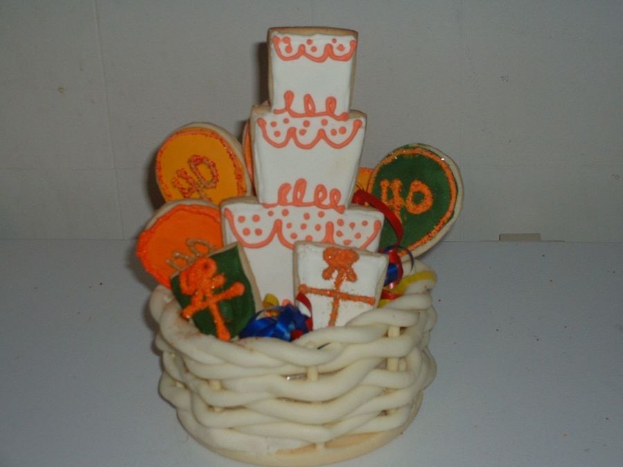 NFSC with royal icing. I used the melted chocolate method to put cookies on sticks. I made the basket from chocolate "clay." Sister loved it all!