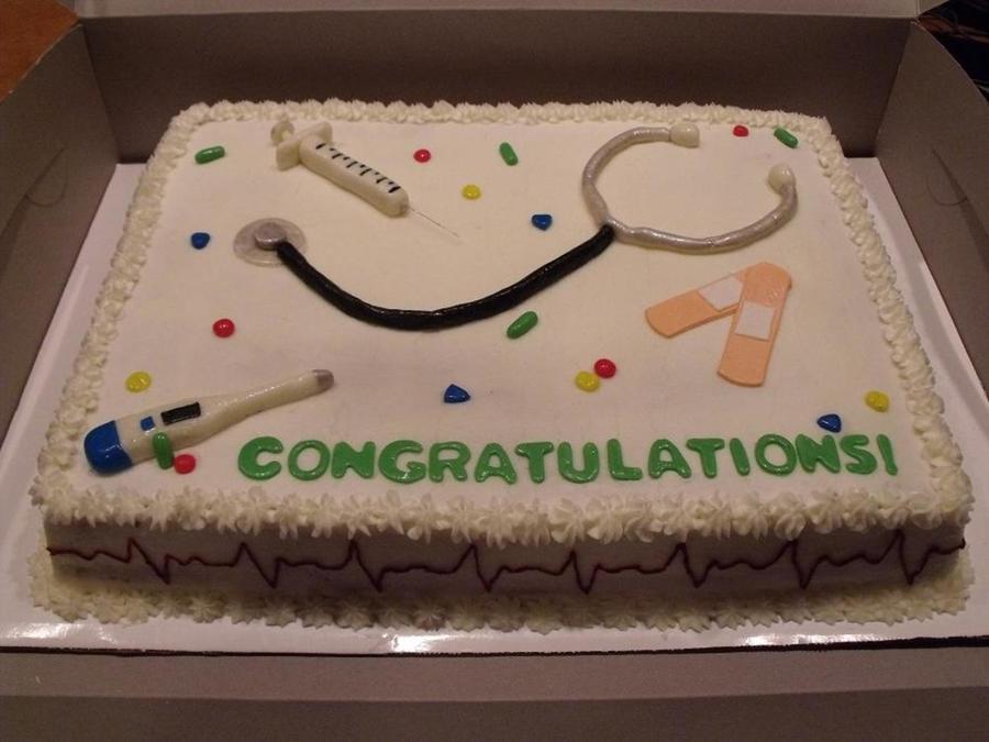 This cake was for a nursing graduate. French vanilla cake covered in BC. Everything else is MMF.