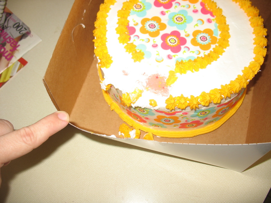 strawberry wasc with mock cheesecake filling and WBH icing. the other picture is where the cat had gotten into the cake. grrr..