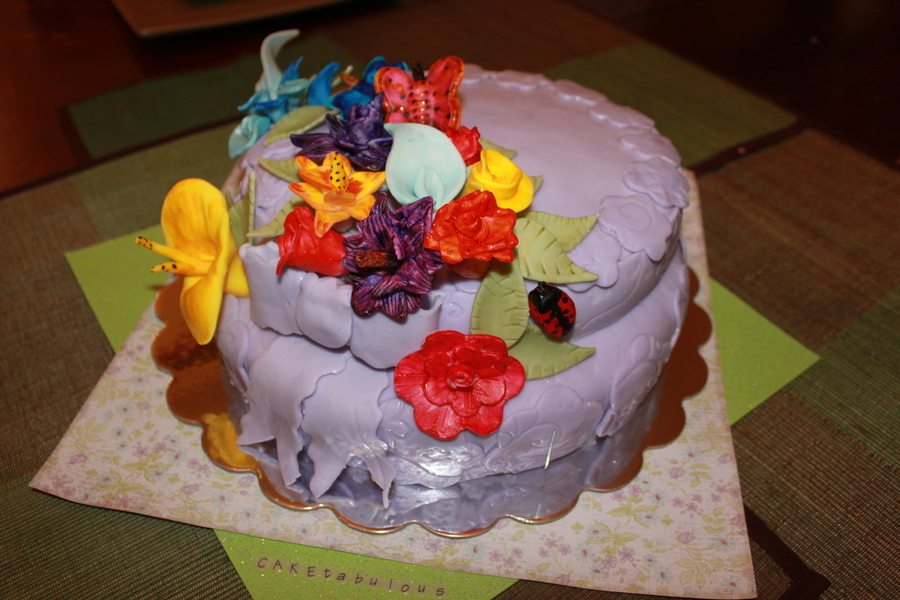 All Fondant on a White cake with Vanilla Icing for a Wonderful 93yr Young Lady!