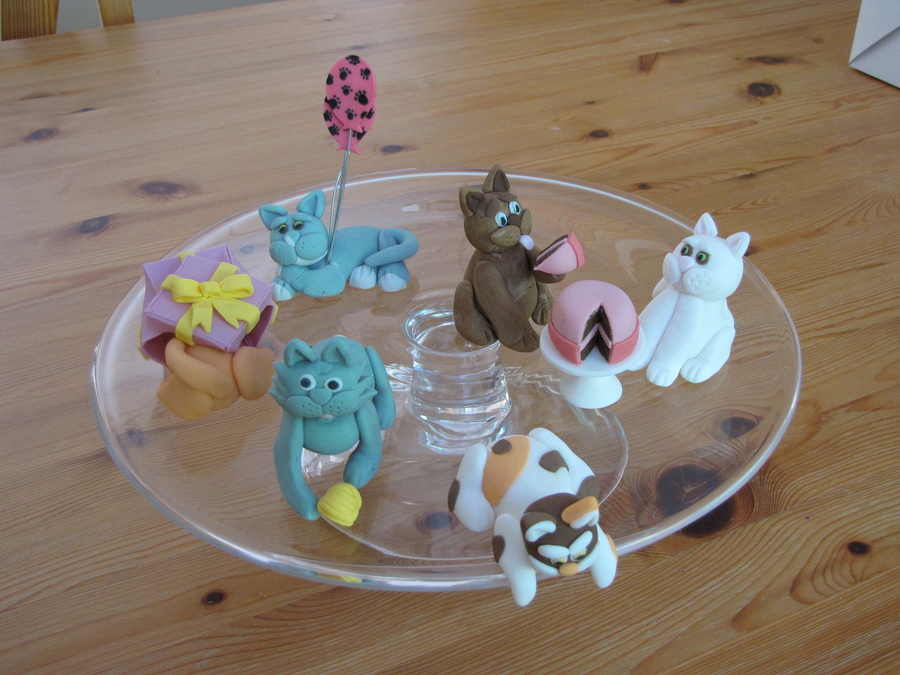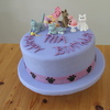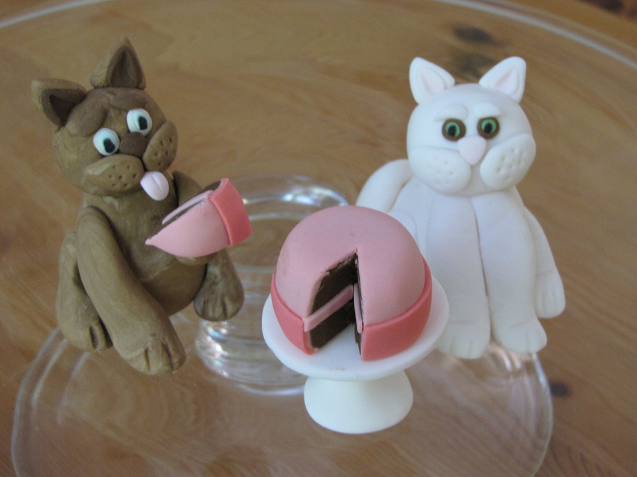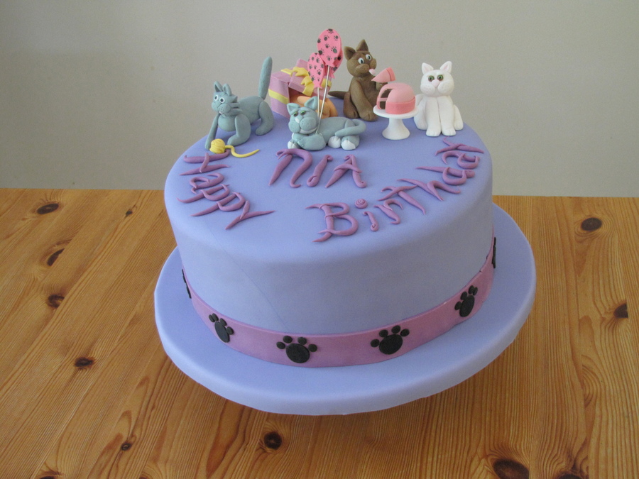 Chocolate cake with whipped strawberry filling. Covered in fondant with fondant cats and decoration,
