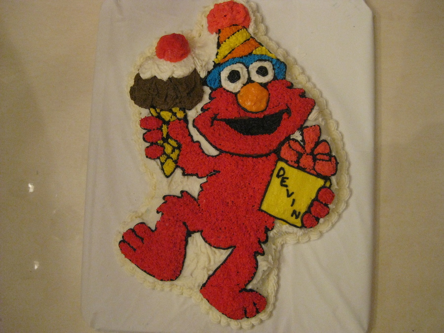 This was the basic 3D Wilton Elmo cake mold. I made this for my first grandsons 1st Birthday. I was out of practice but will have many more to make.