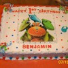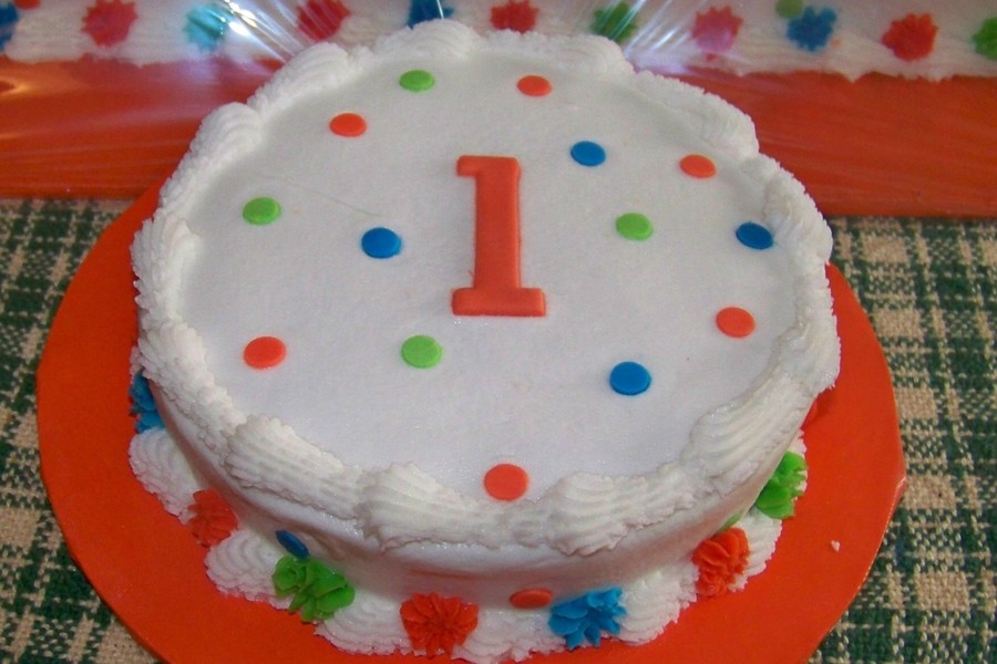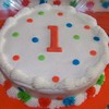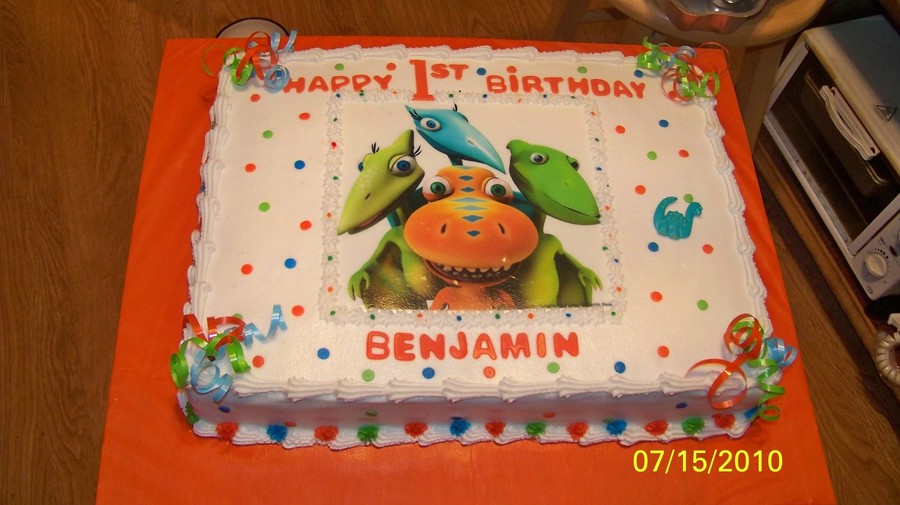 1/2 almond white sheet cake with bc icing. Dino train edible image..fondant letters and acccents...ribbons... TFL also smash cake...