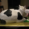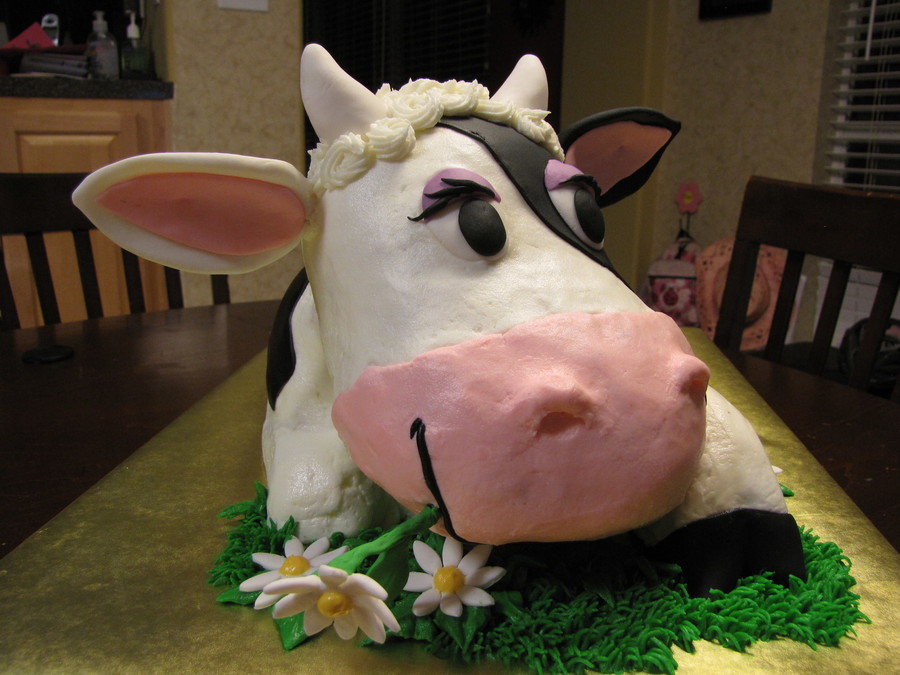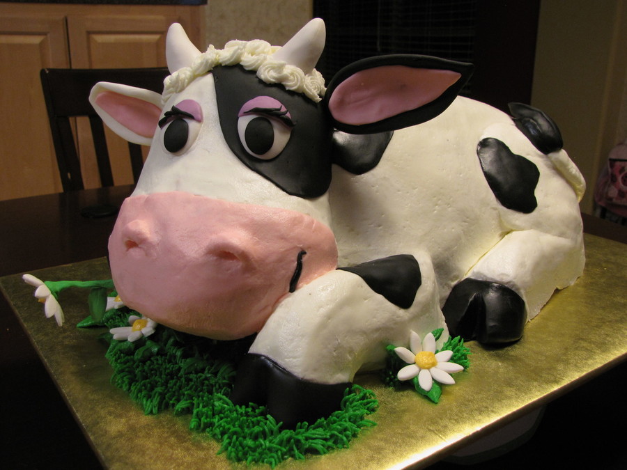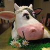 choc/vanilla marble cake stacked & carved from a 12x15 sheet cake. head is RKT. all buttercream with fondant ears and accents.