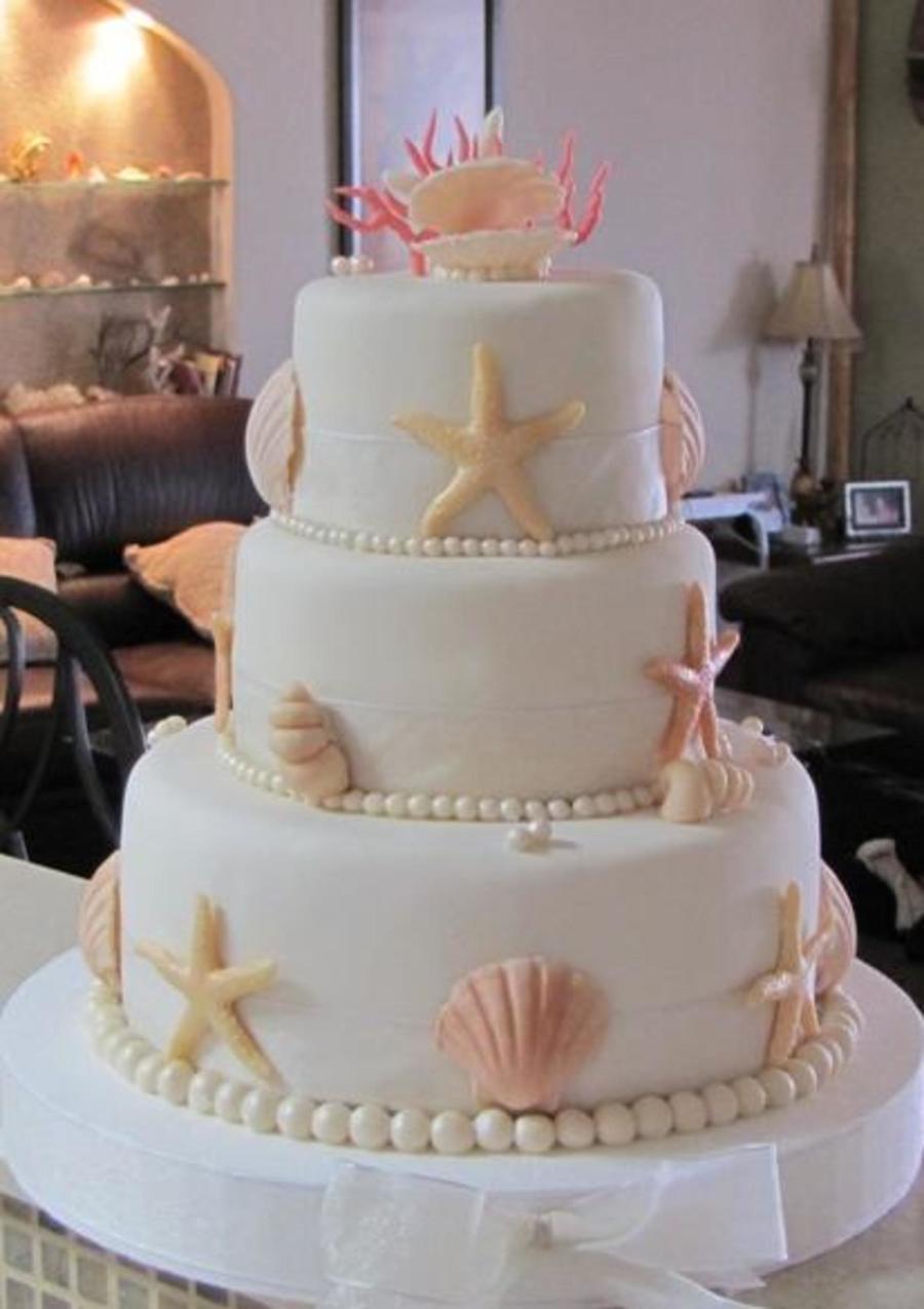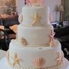 Almond Pound cake chocolate filling. Covered with fondant, pearls and shells were made of gumpaste using silicon molds. Corals made of royal icing. Thank you for looking