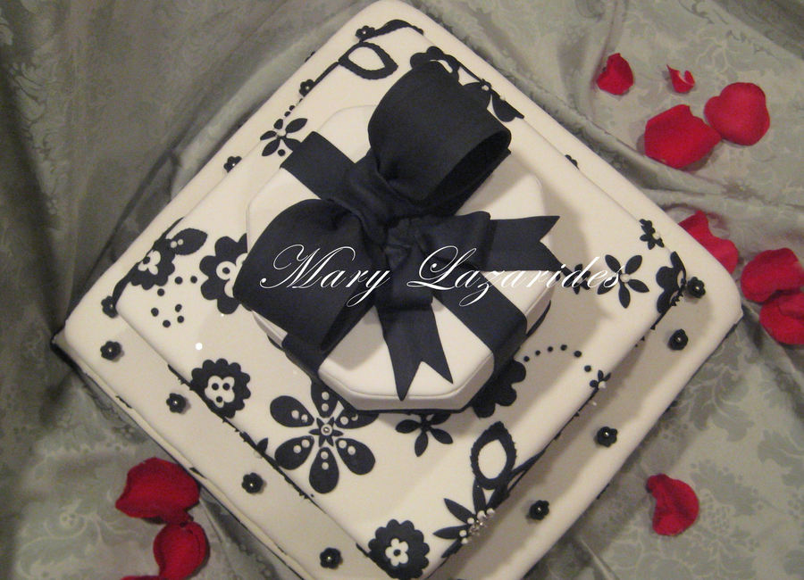 Black And White Ringbox Engagement Cake