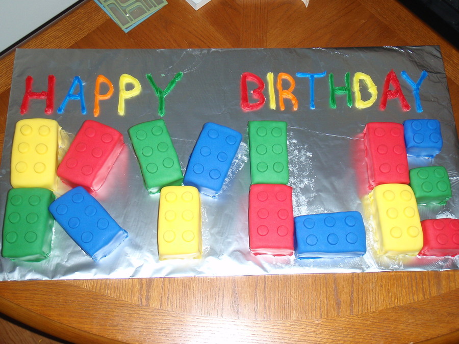 Lego cake for my little brother. Each lego piece is approx. 2"x4". and covered in fondant. The kids just turned them upside down and ate the cake using the fondant covering as a bowl...very clever! TFL.