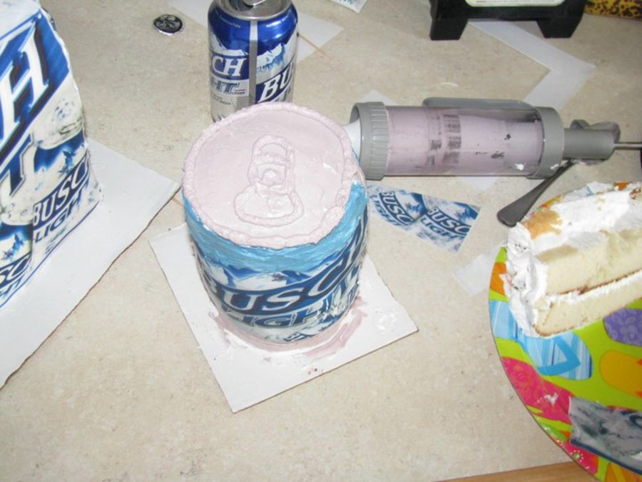 I made this for a surprise 30th party, They wanted a 30 pack , and can of beer, I used eatible sugar sheets for the beer box, and the busch saying on the can.