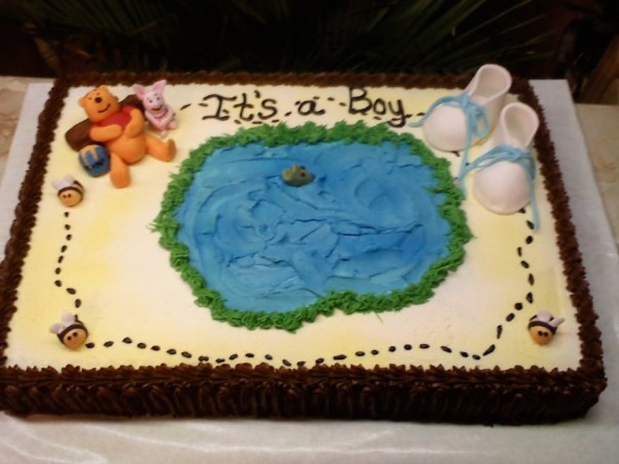 This cake is covered with buttercream icing and the accents are made from fondant.