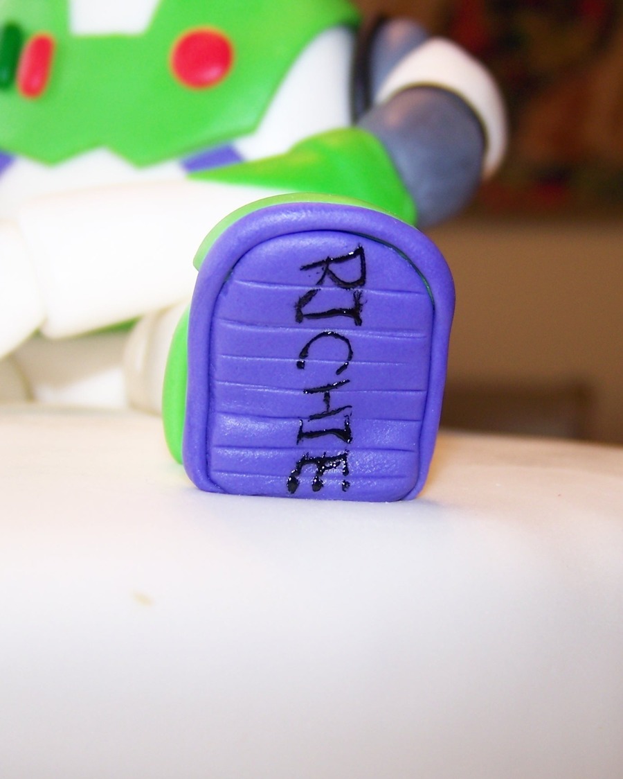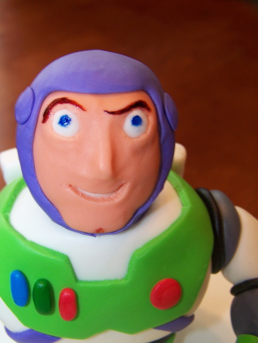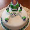Fondant Buzz Lightyear figure/chocolate cake with cream cheese icing.