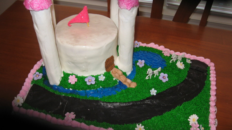 Horse and water for a practice castle cake for a little girls 3rd birthday