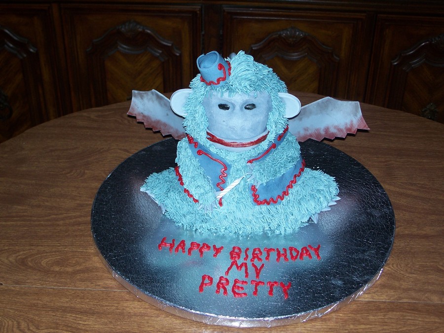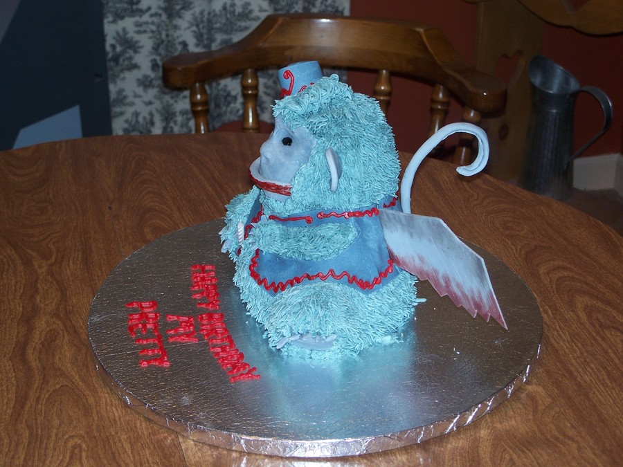 3D bear pan, iced in buttercream with gumpaste details. Tail is wire covered in gp. I made this for my son-in-law that is phobic of the Flying Monkeys in Wizard of Oz :)