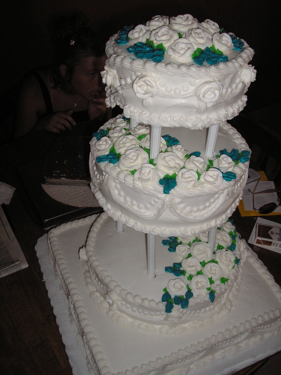 This was a carrot cake with cream cheese frosting. Roses are made of royal icing. Very heavy cake!!