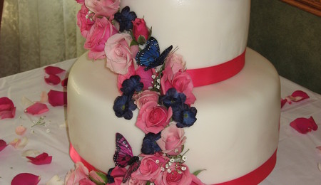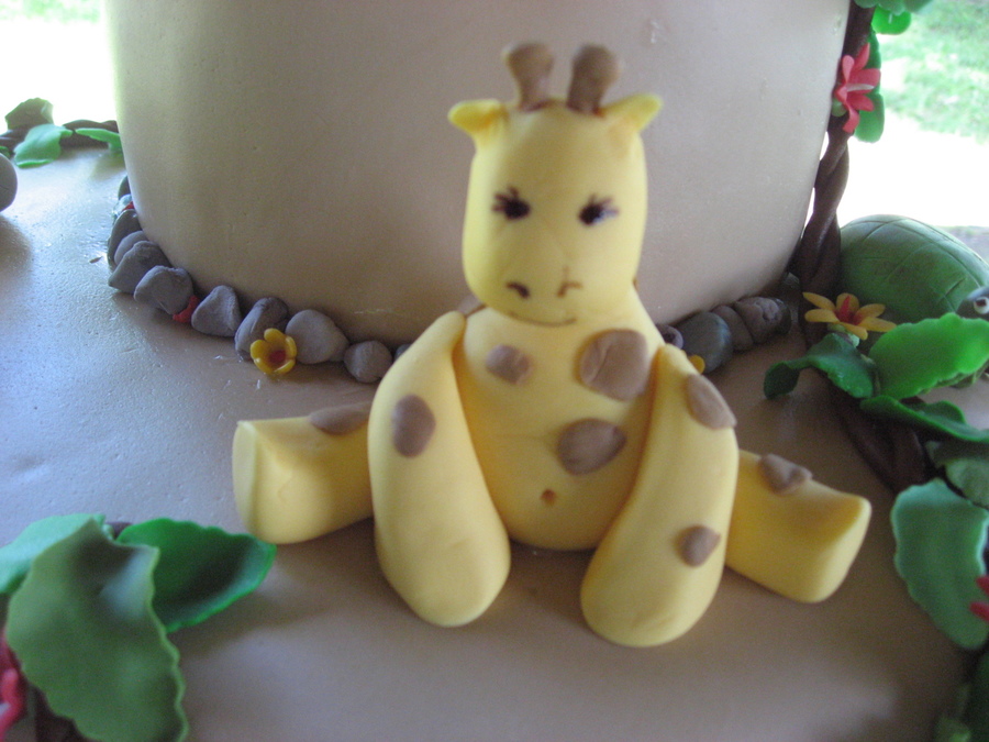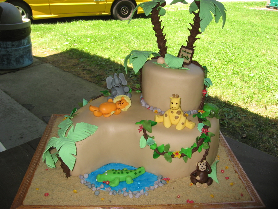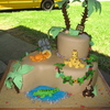 This was a baby shower cake. all of the decorations were made of gum paste. The most difficult part was getting the palm fonds to stay on the trees.