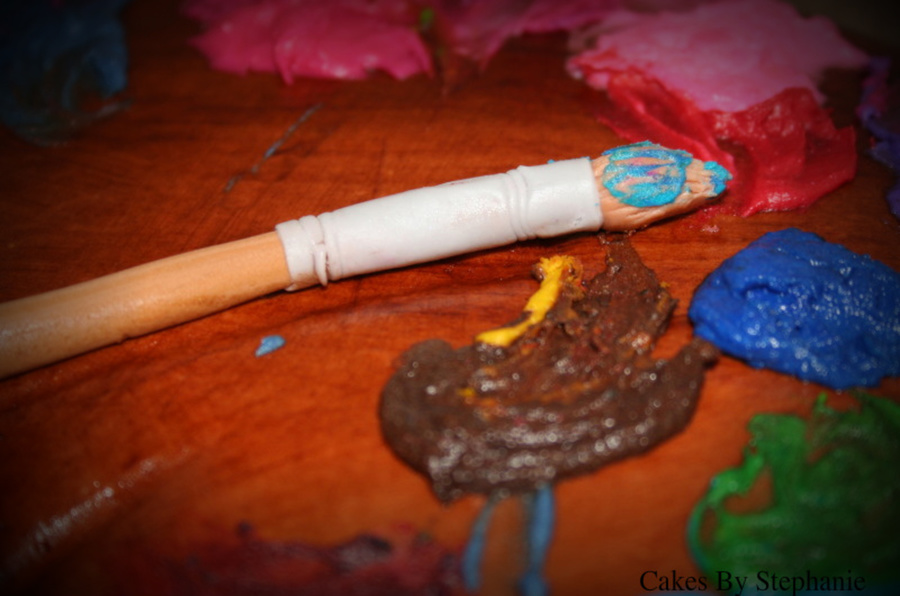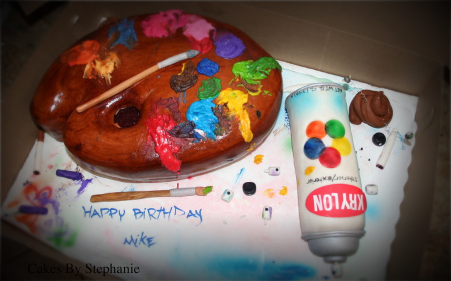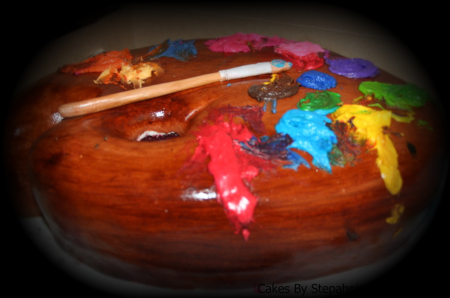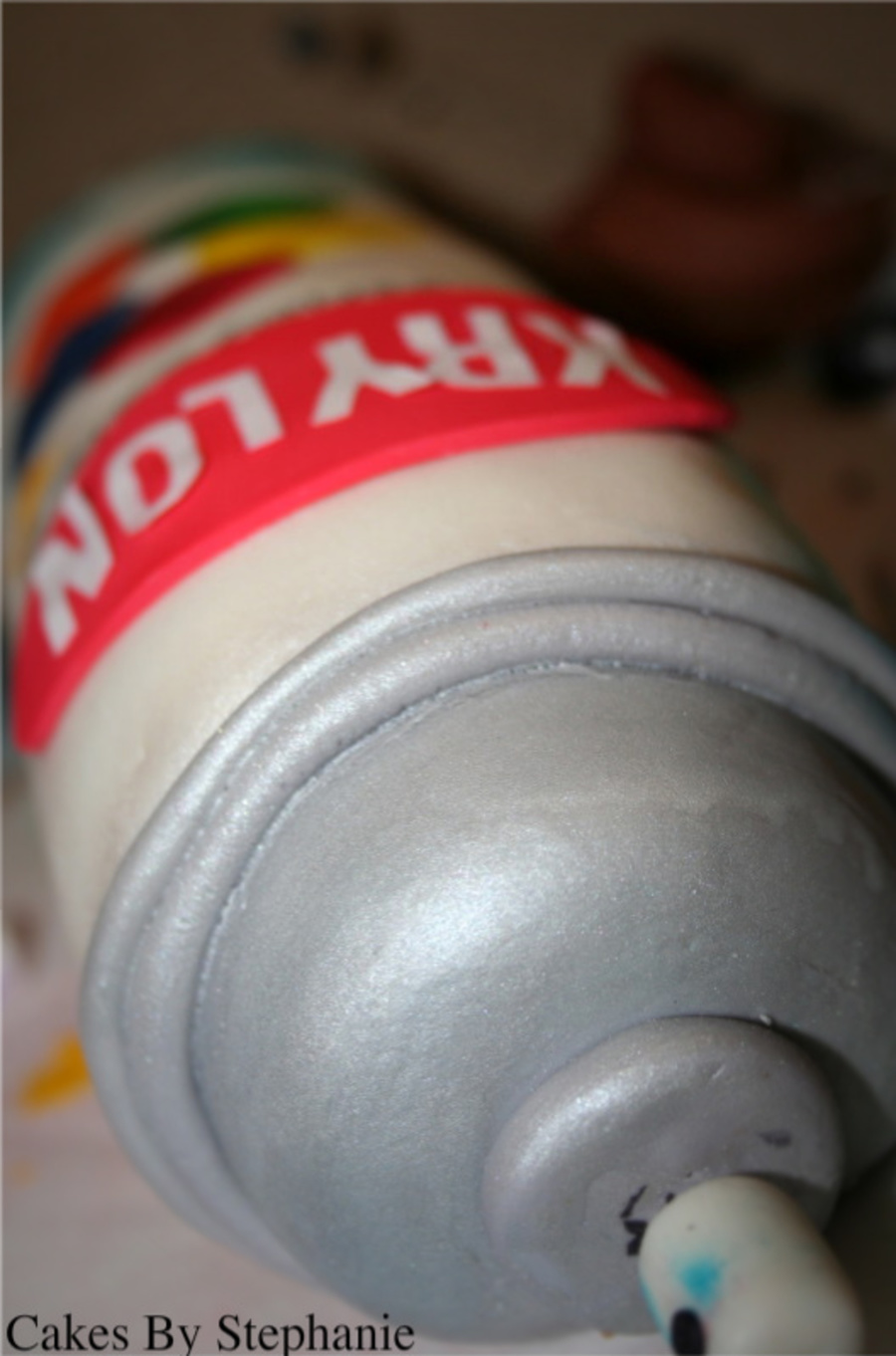 The pallet cake is all red velvet cake and the spray can is lemon cake ; )