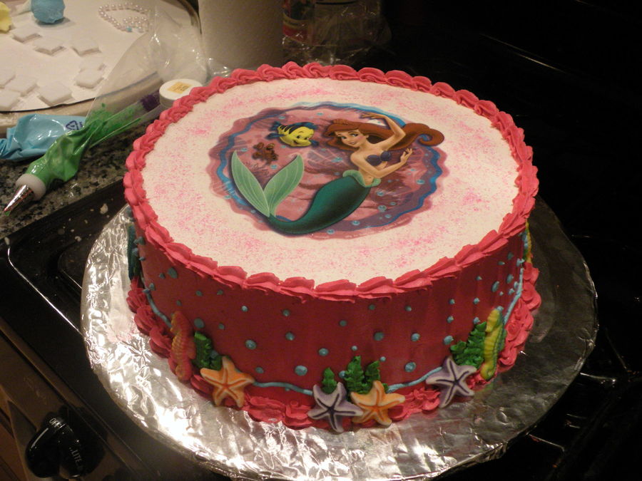 Little Mermaid birthday cake for a clients daughters first birthday. Little Mermaid edible image, buttercream frosted. TFL (a little mermaid cake by beachcakes was my inspiration for this cake, it really fit what the client asked for, thanks!!)
