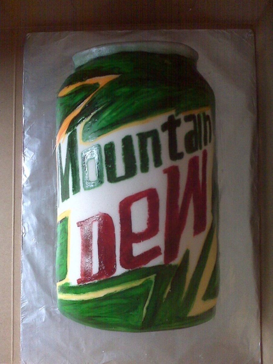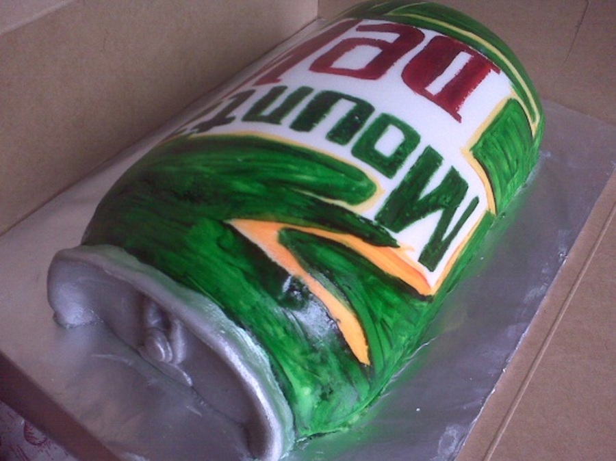 Half can of Mt Dew. hand painted logo with food color