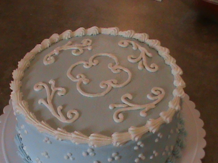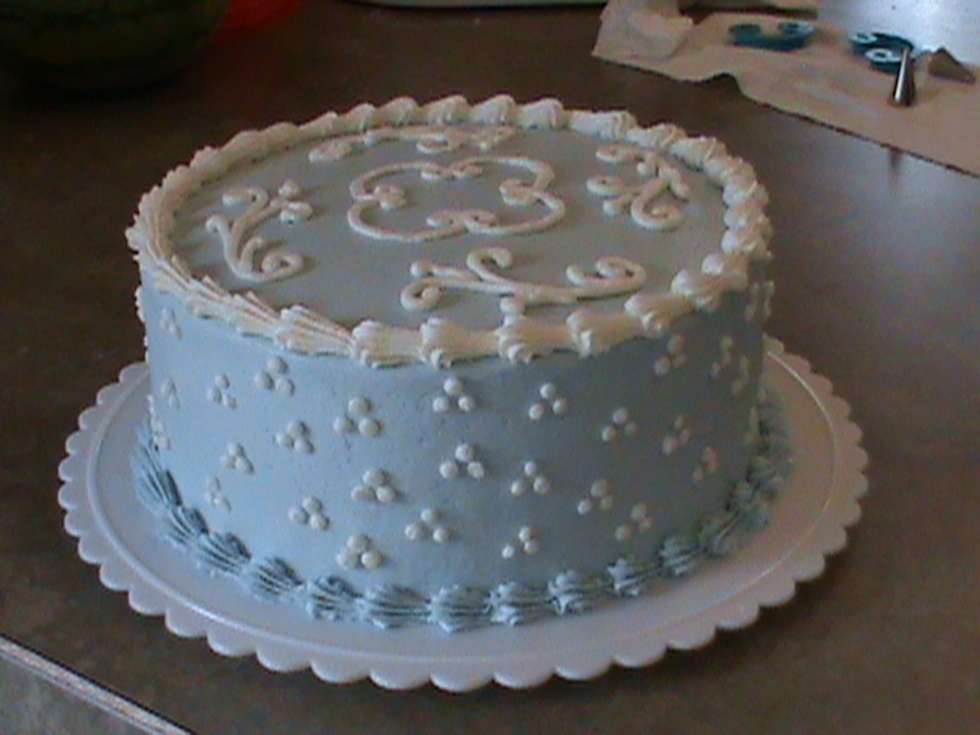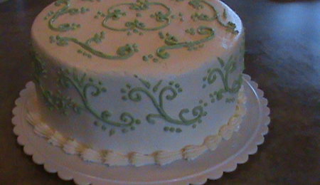 white cake, filled with homemade lemon curd filling, iced with "buttercream dream" icing.