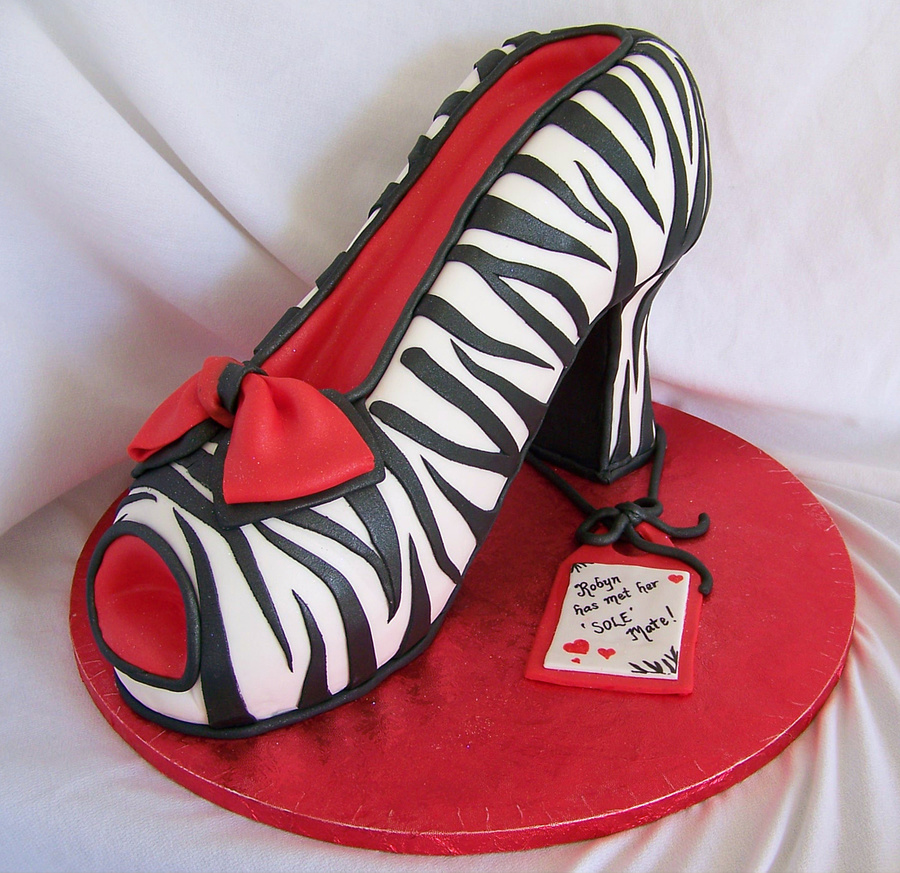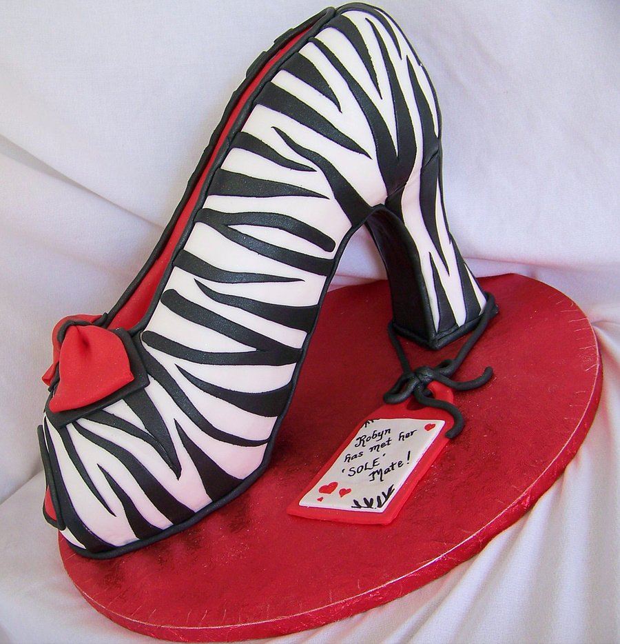 This was supposed to be a 3D rendition of a luggage tag, which was the theme of a bridal shower. (I do apologize I was trying to switch around these photos earlier and when I deleted one, the whole thing deleted...so having to reload). I am sorry I did not get a photo of the dowel/wood support I used in this shoe. I should have! Its pumpkin cake with cream cheese filling and vanilla buttercream under fondant. Fun stuff!