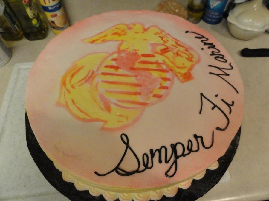 Vanilla cake with vanilla buttercream and strawberry filling with a framboise simple syrup... Decoration - using the new product I found called cake graffiti by Duff Goldman its like an aerosol spray can of paint but for cakes. Created my own stencil and it worked pretty good... need a different material to make stencil next time though.
