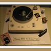 14" square. Record is a 9" round. GP over RCT for most accent pieces or else just GP. Arm is a dowel painted with silver highlighter. Edible images on accent pieces. Fun cake to make for an 80s themed birthday party
