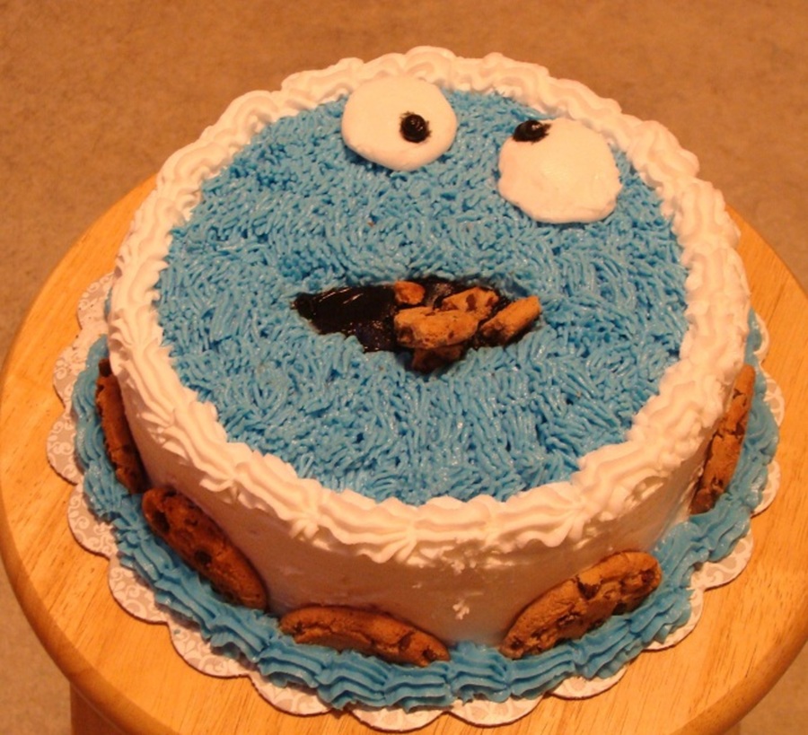 My husband made this cake for his buttercream cake decorating finals class - who doesnt love cookie monster!