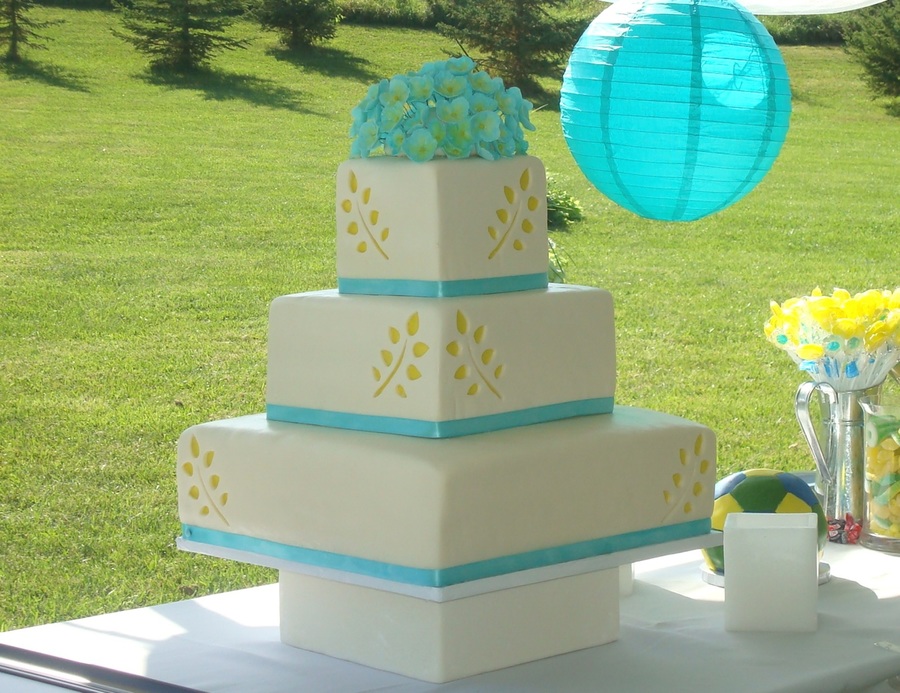 Round Bridal Shower Cake With Gumpaste Flower