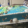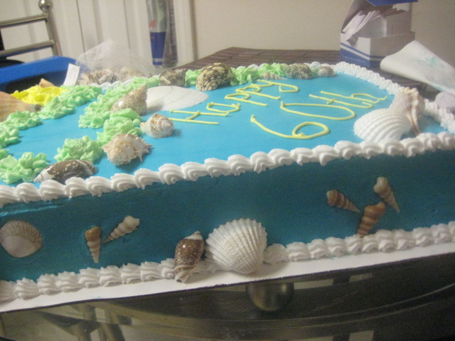1/2 sheet cake (french vanilla) with buttercream icing, BC roses/carnations, real seashells