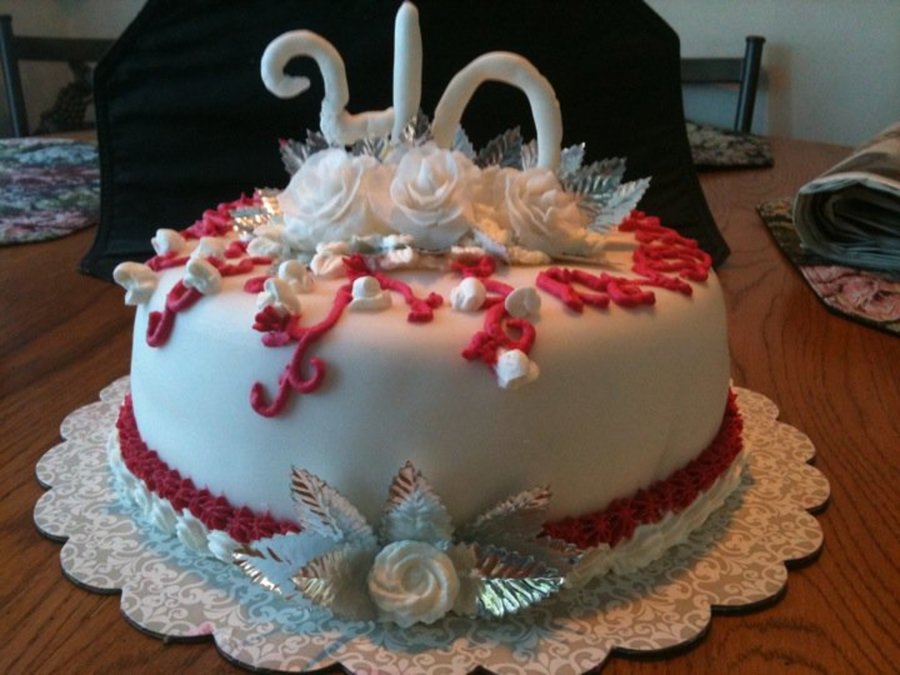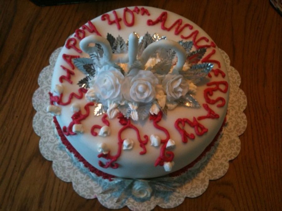 40th Ruby anniversary Cake! Fondant covered with whipped cream accent and fondant roses!